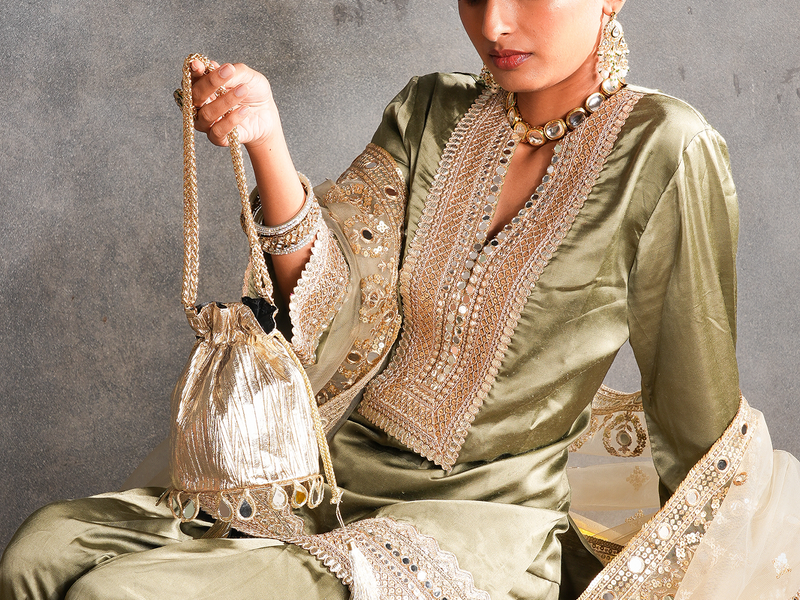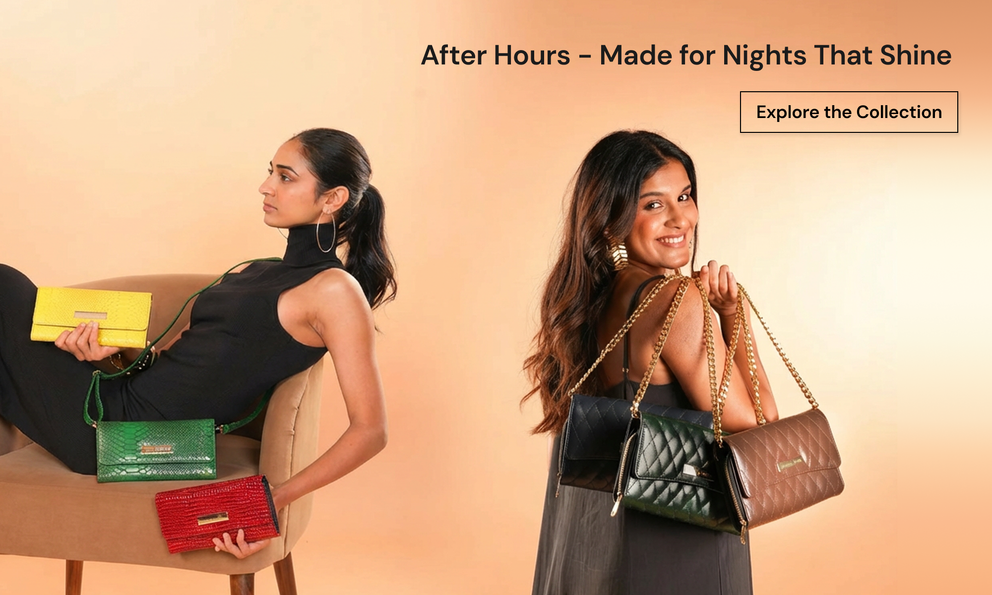 A collection of evening bags in strong metallics and nudes to amp...