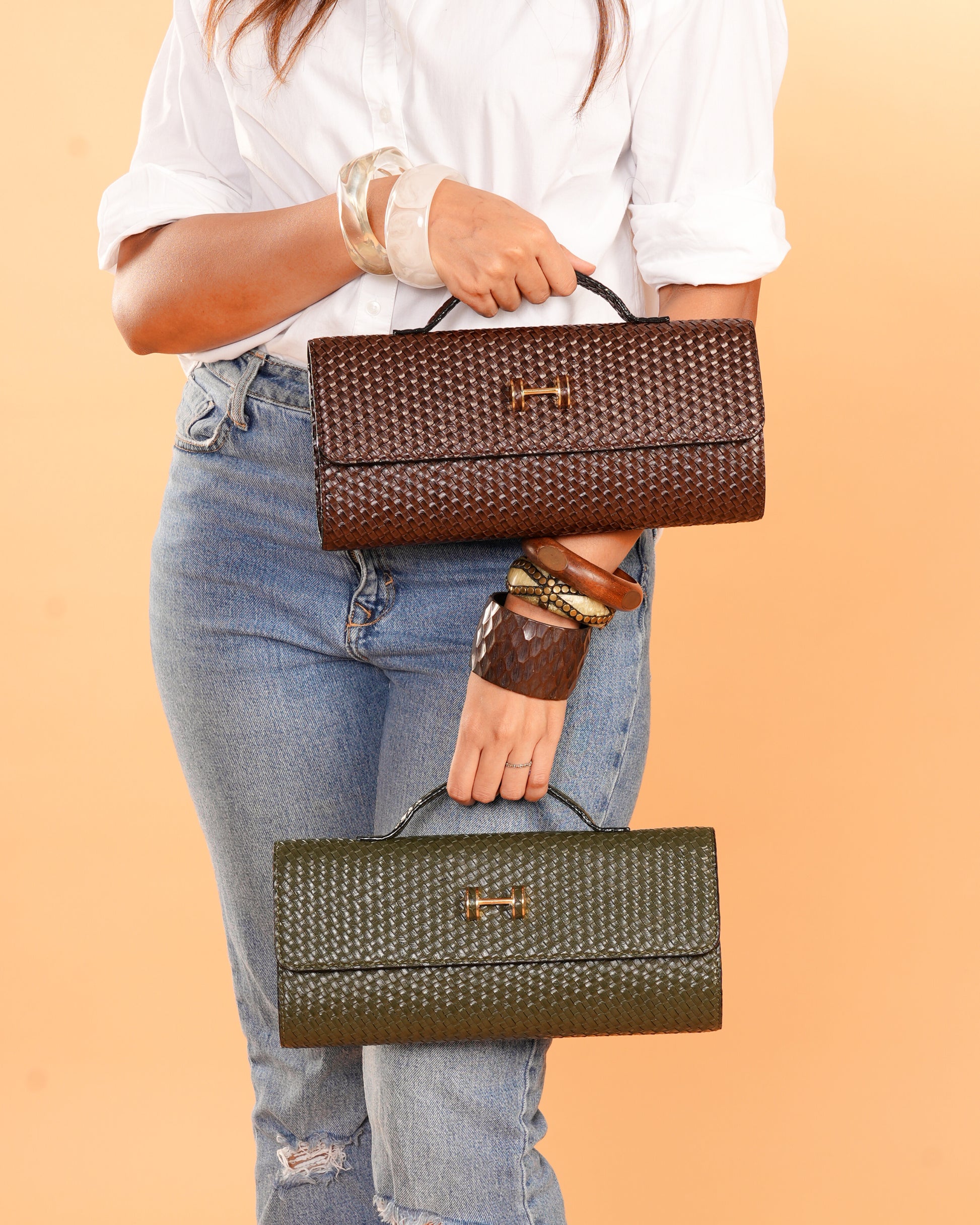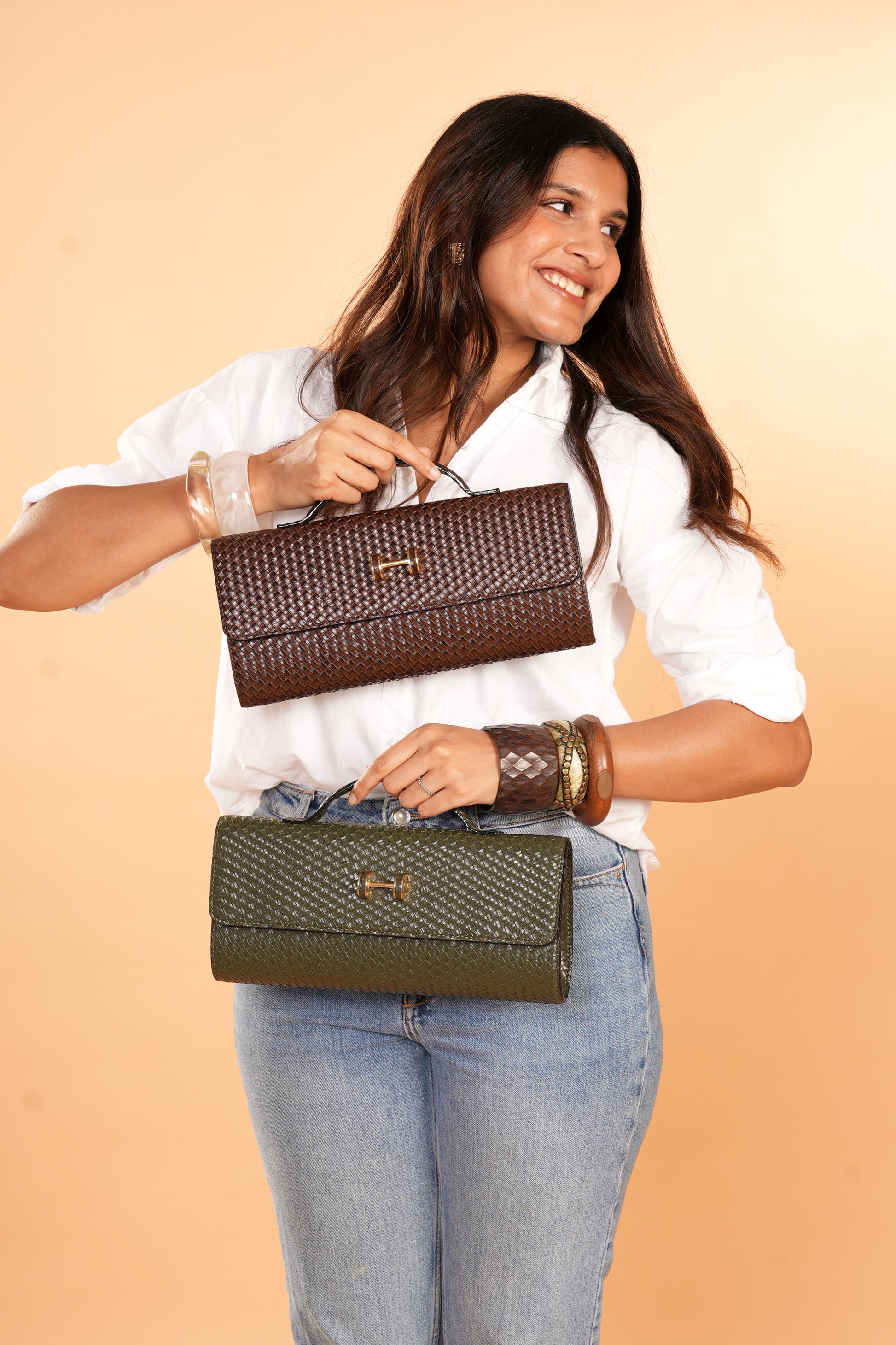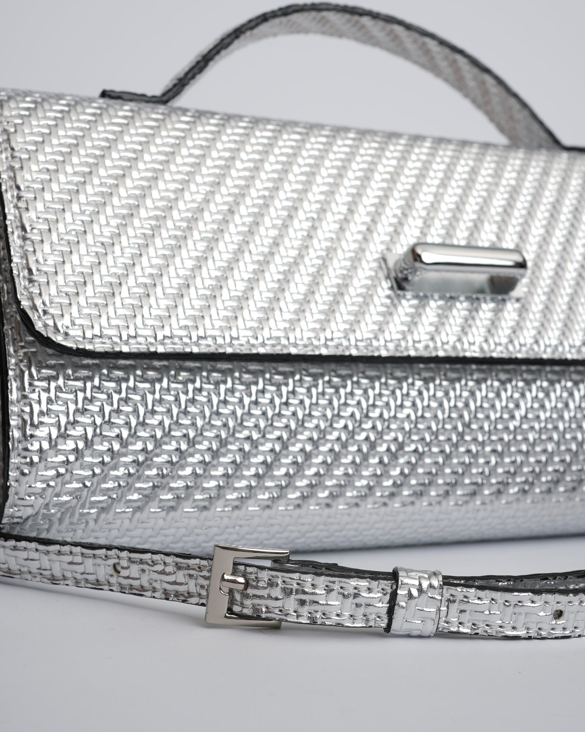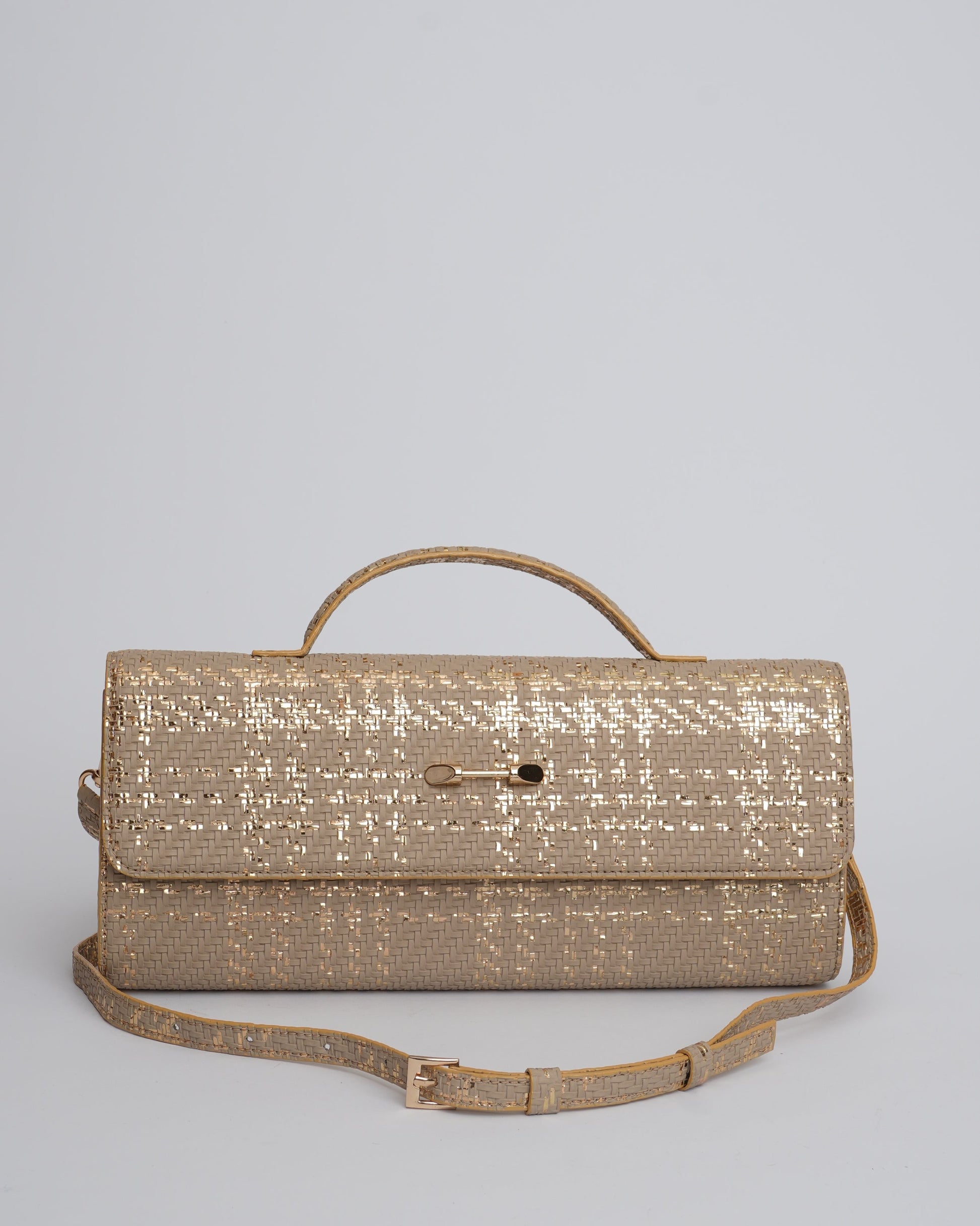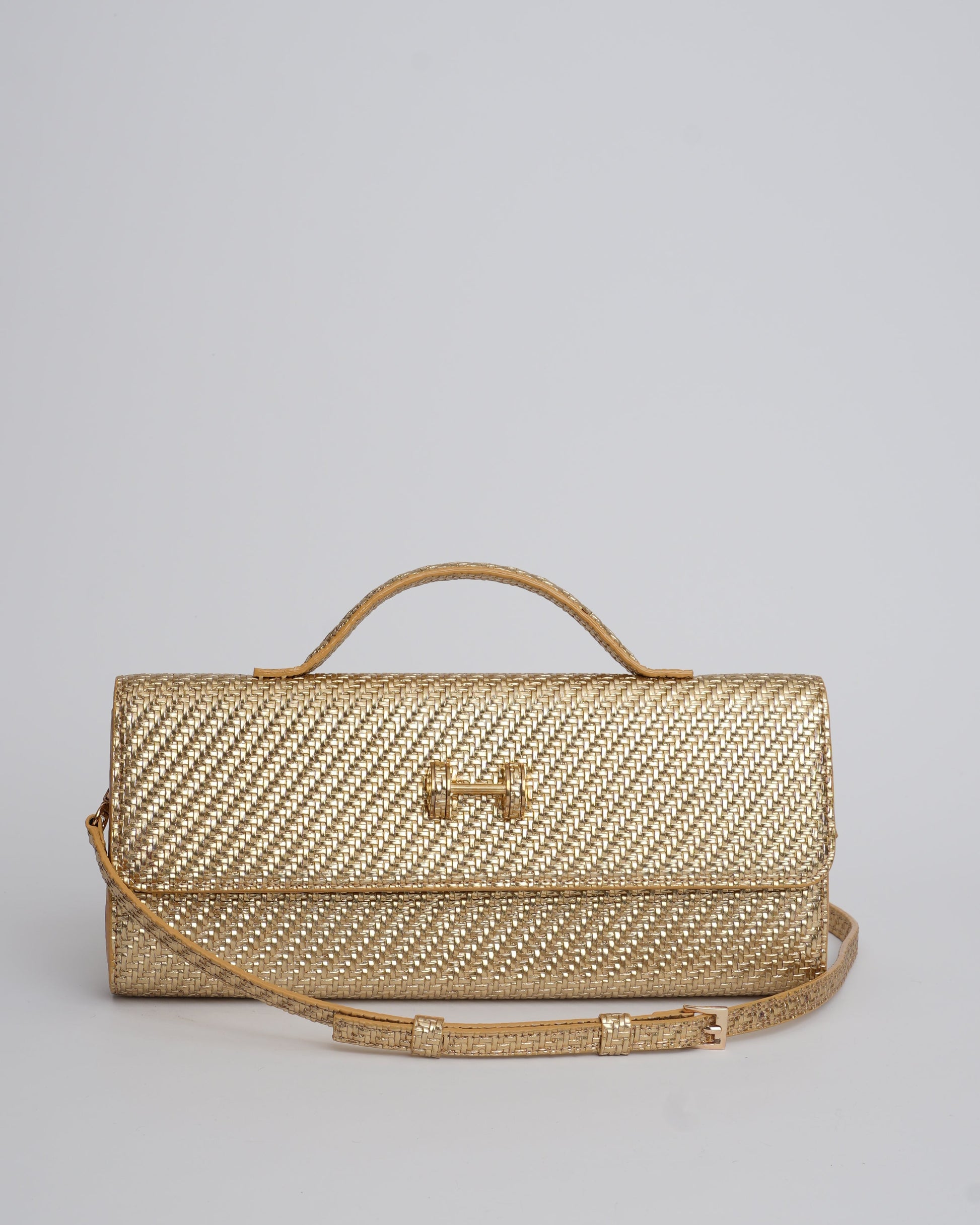 The chic rectangular Extensa is made in a various gorgeous tones. Created in textured faux leather, this elongated clutch design comes with a short handle anda long strap with a mini buckle.