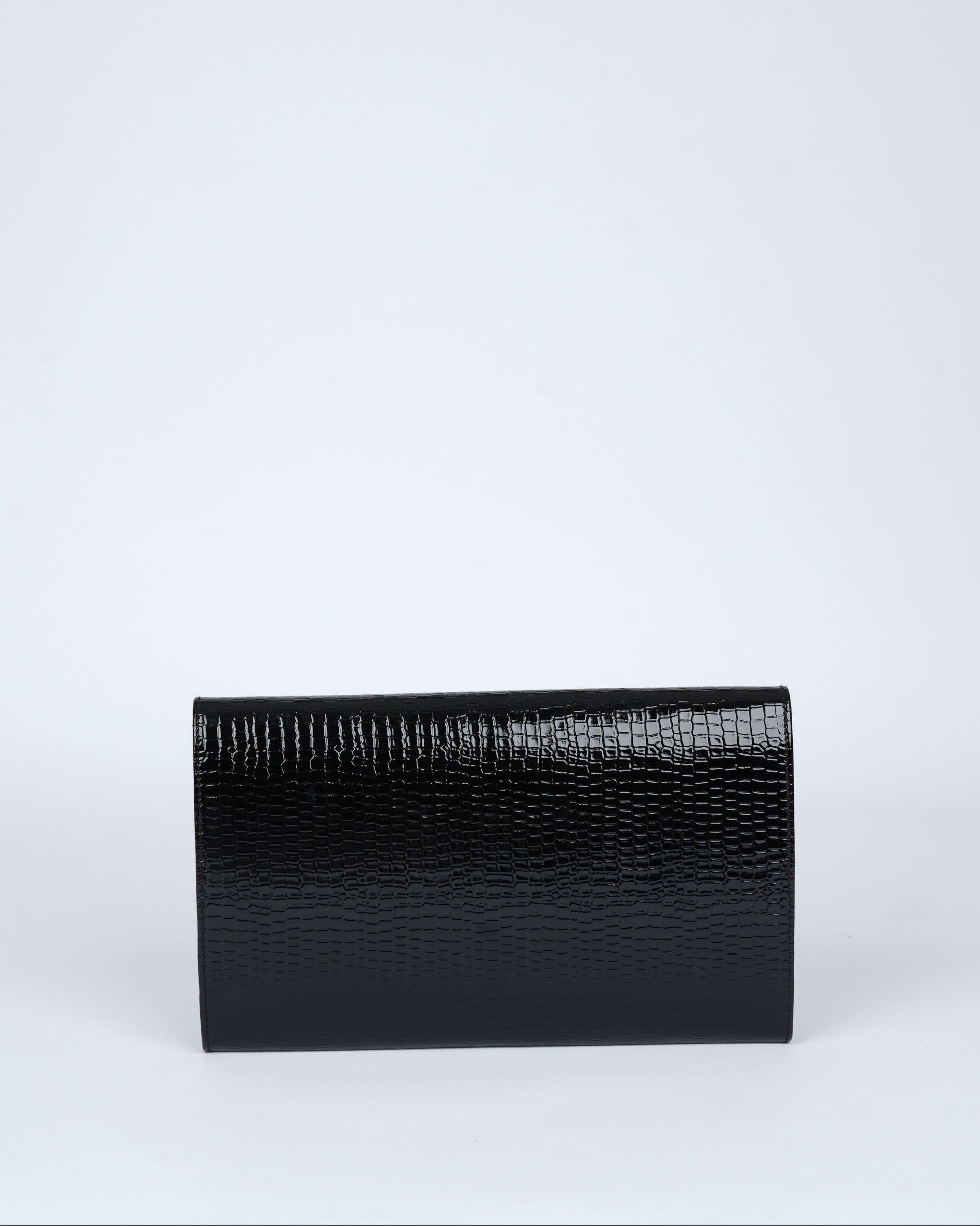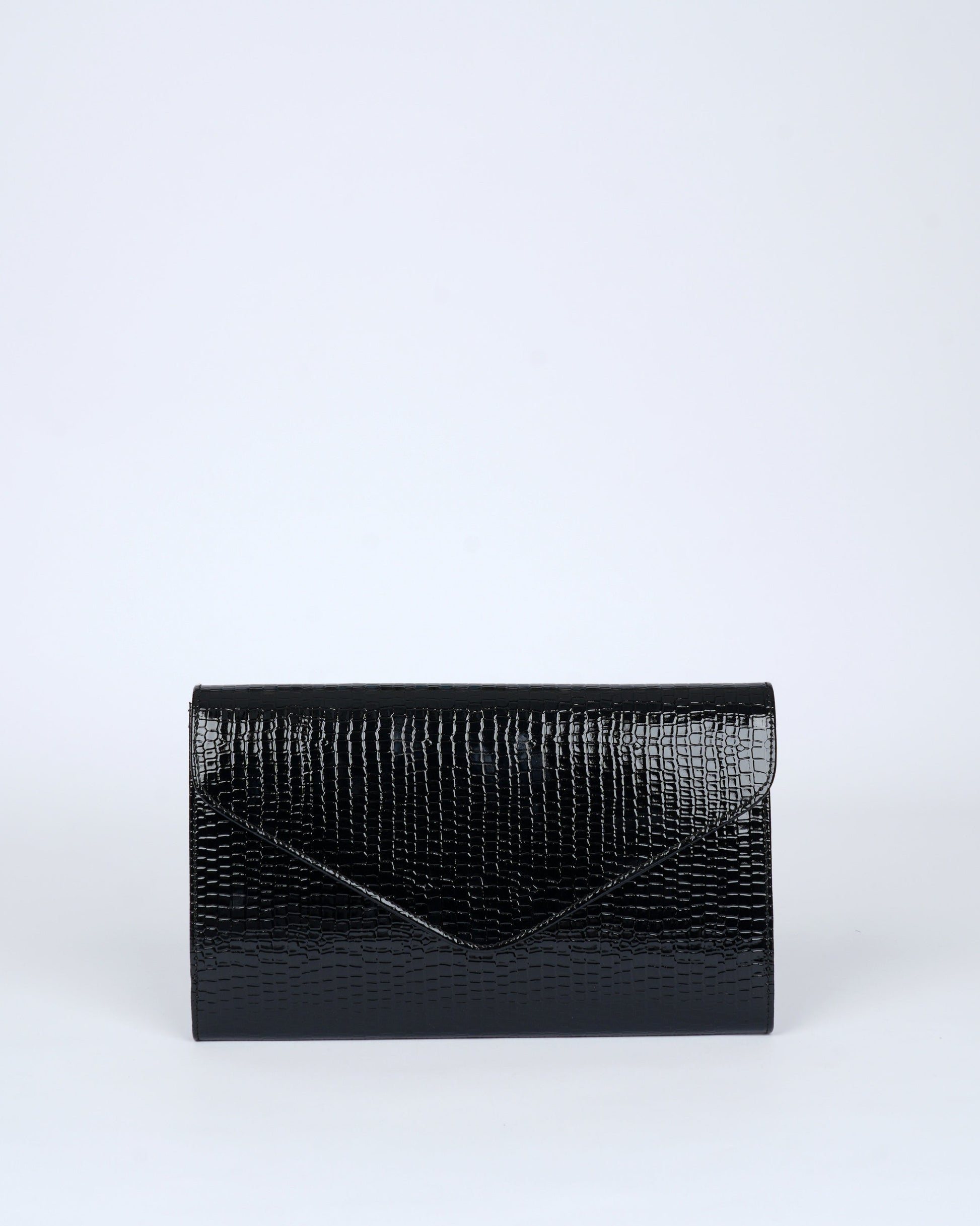 This oversized clutch is crafted in a refined snakeskin texture in faux leather, excluding modern opulence and quiet power.