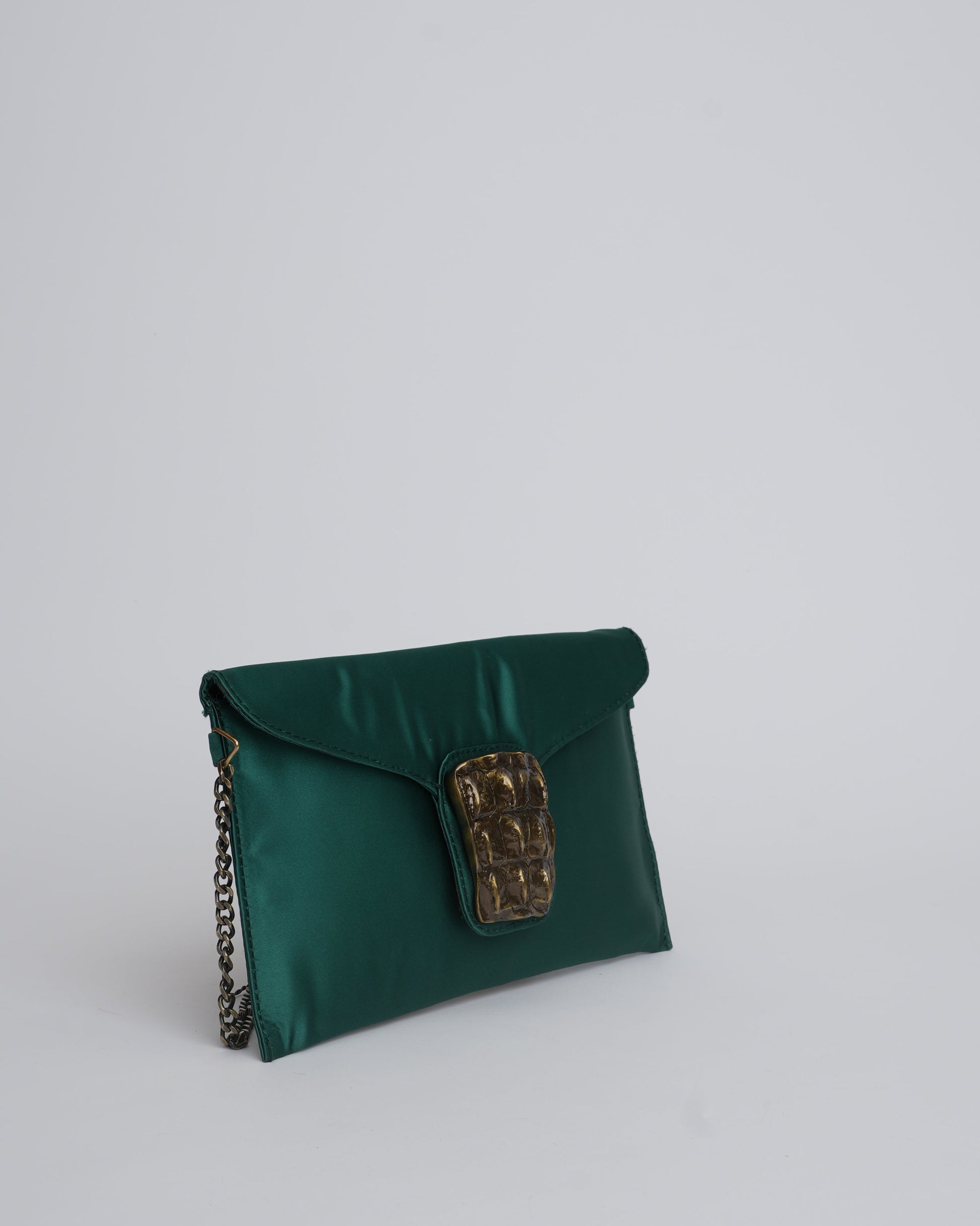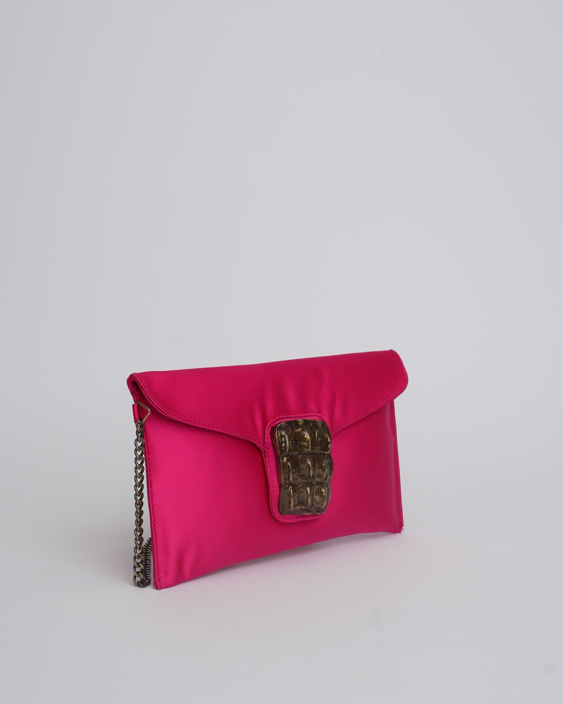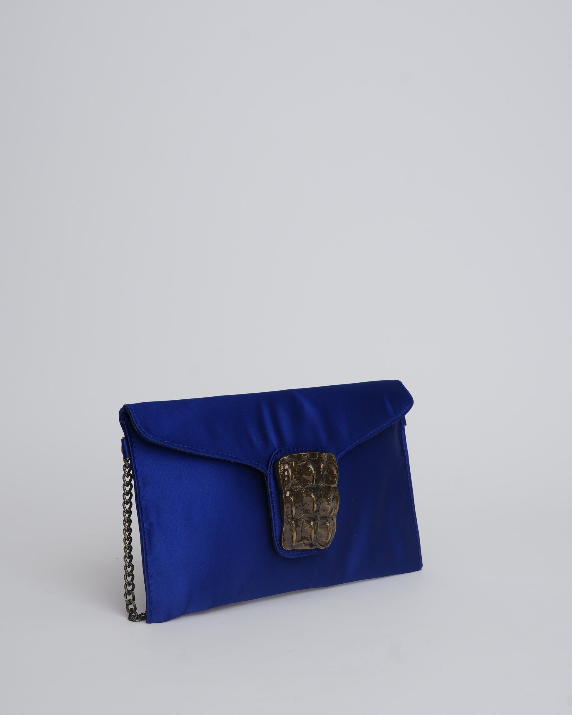 Constructed in deep satin tones, the Fivela clutch is a head turner. Rectangular in shape and adorned with an antique beaten buckle, a statement piece for the Uber cool Bonita!!