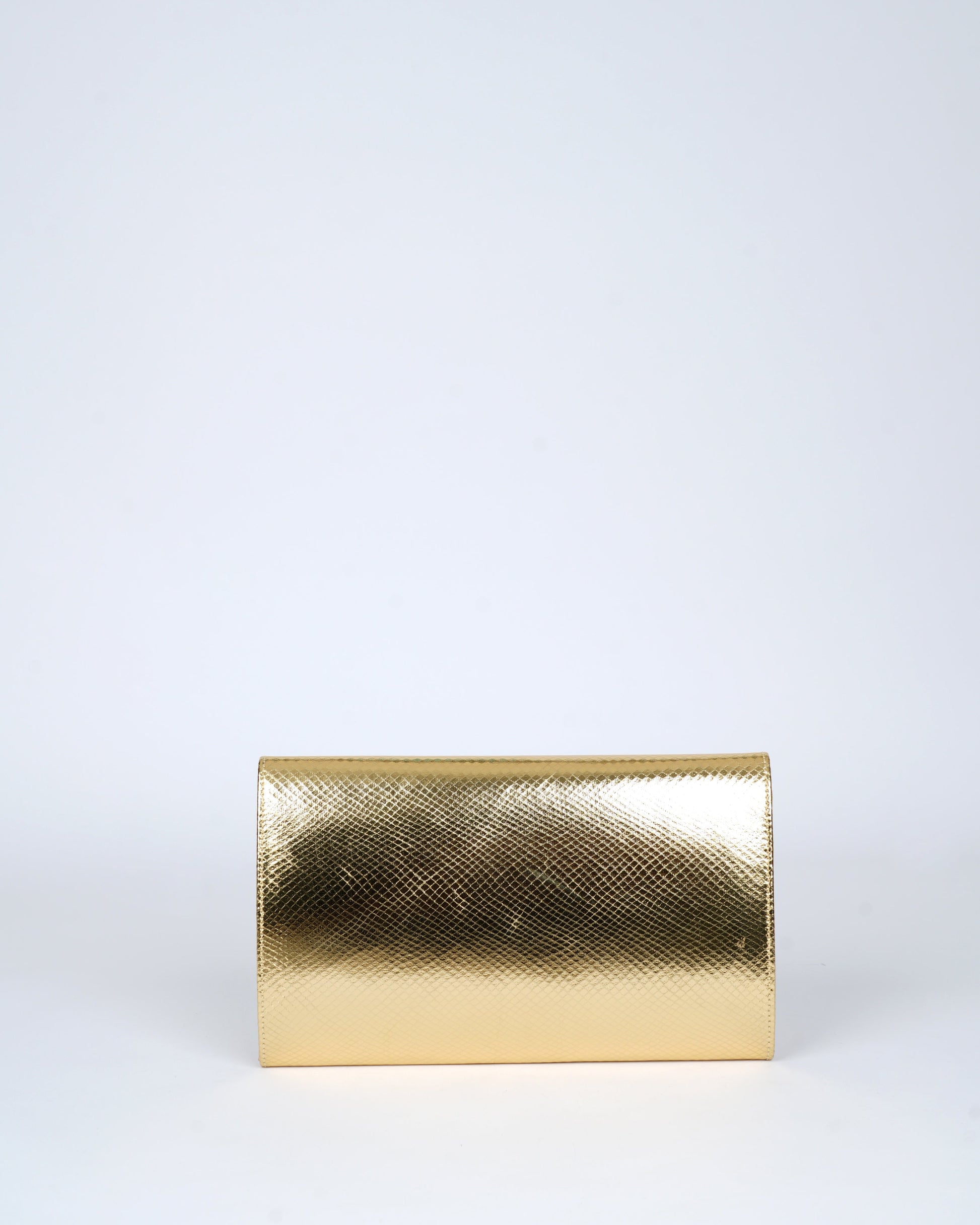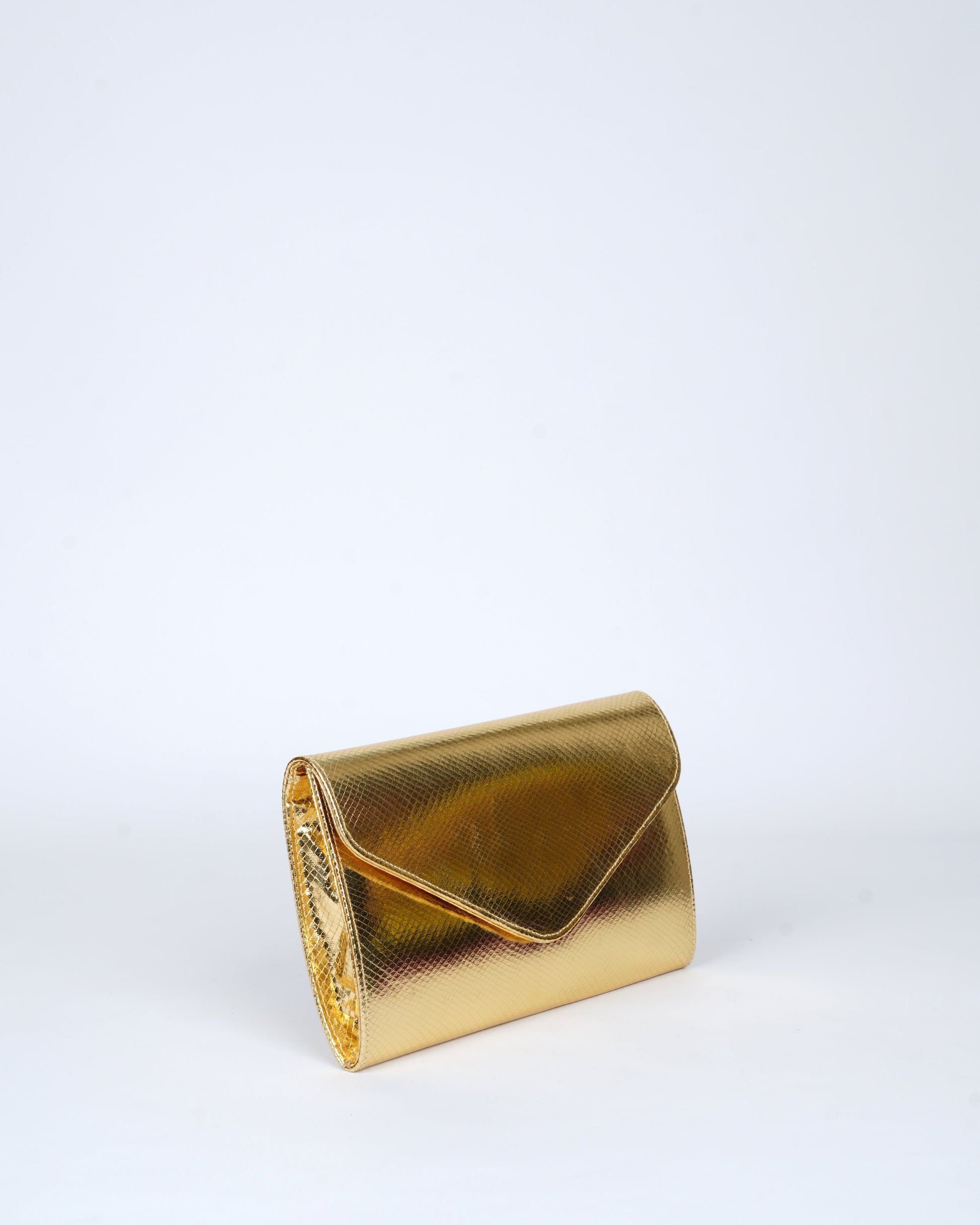 All eyes on gold. This oversized clutch is drenched in radiant gold, designed to shine with effortless confidence. Bold yet impeccably polished, it brings a touch of glamour to every move while delivering statement making presence.