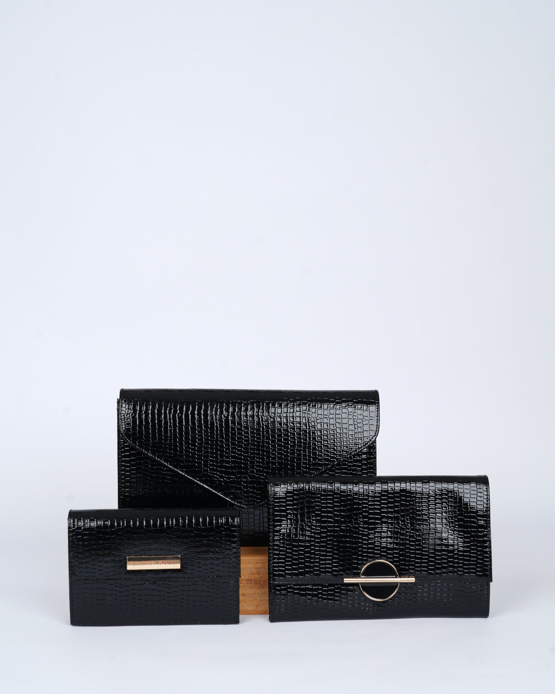 This medium clutch is crafted in a refined snakeskin texture in faux leather, excluding modern opulence and quiet power.